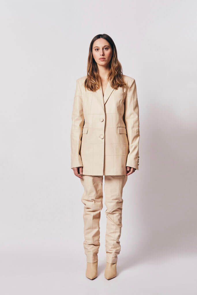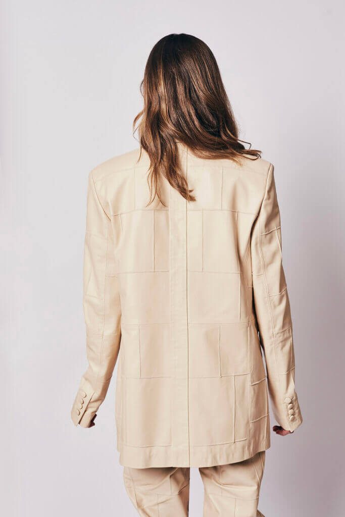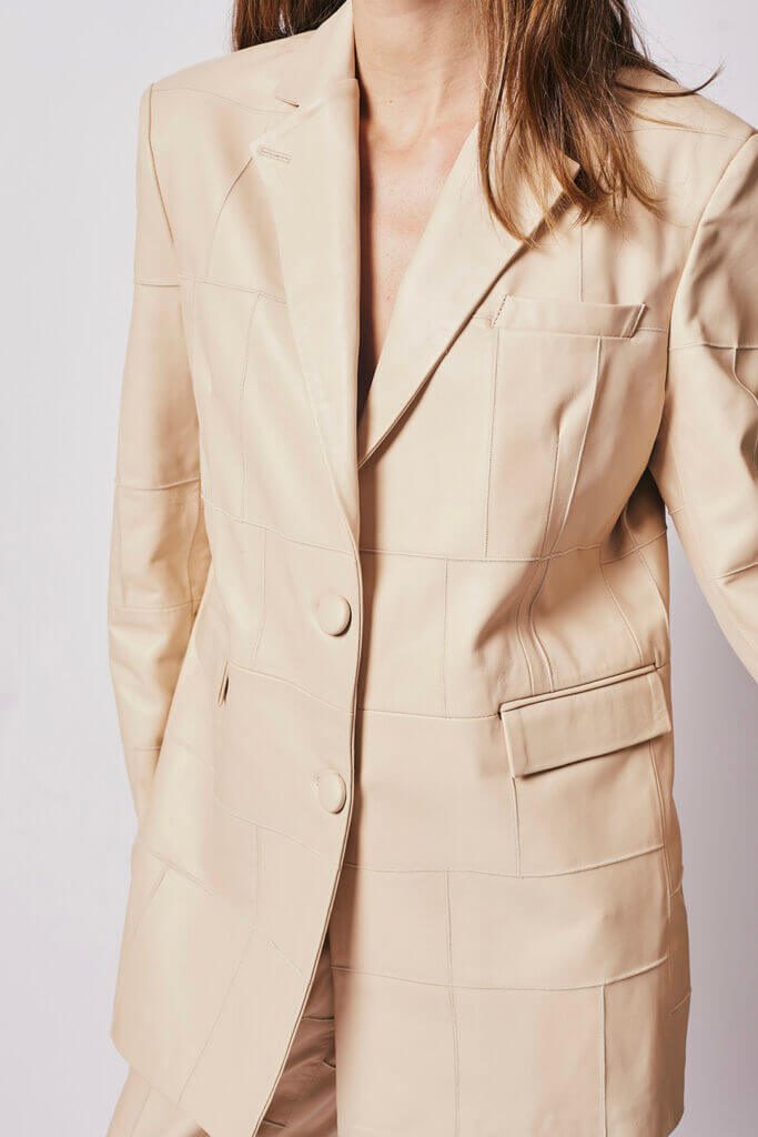 OVERSIZE LAMBSKIN LEATHER BLAZER WITH NEEDLEWORK DETAILING.